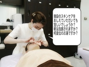 そんなMさんもクレンジングの最中からカウンセリングをはじめ、お客様の肌の悩みについて色々とお話を聴き、肌トラブルの原因を考えて行っています!