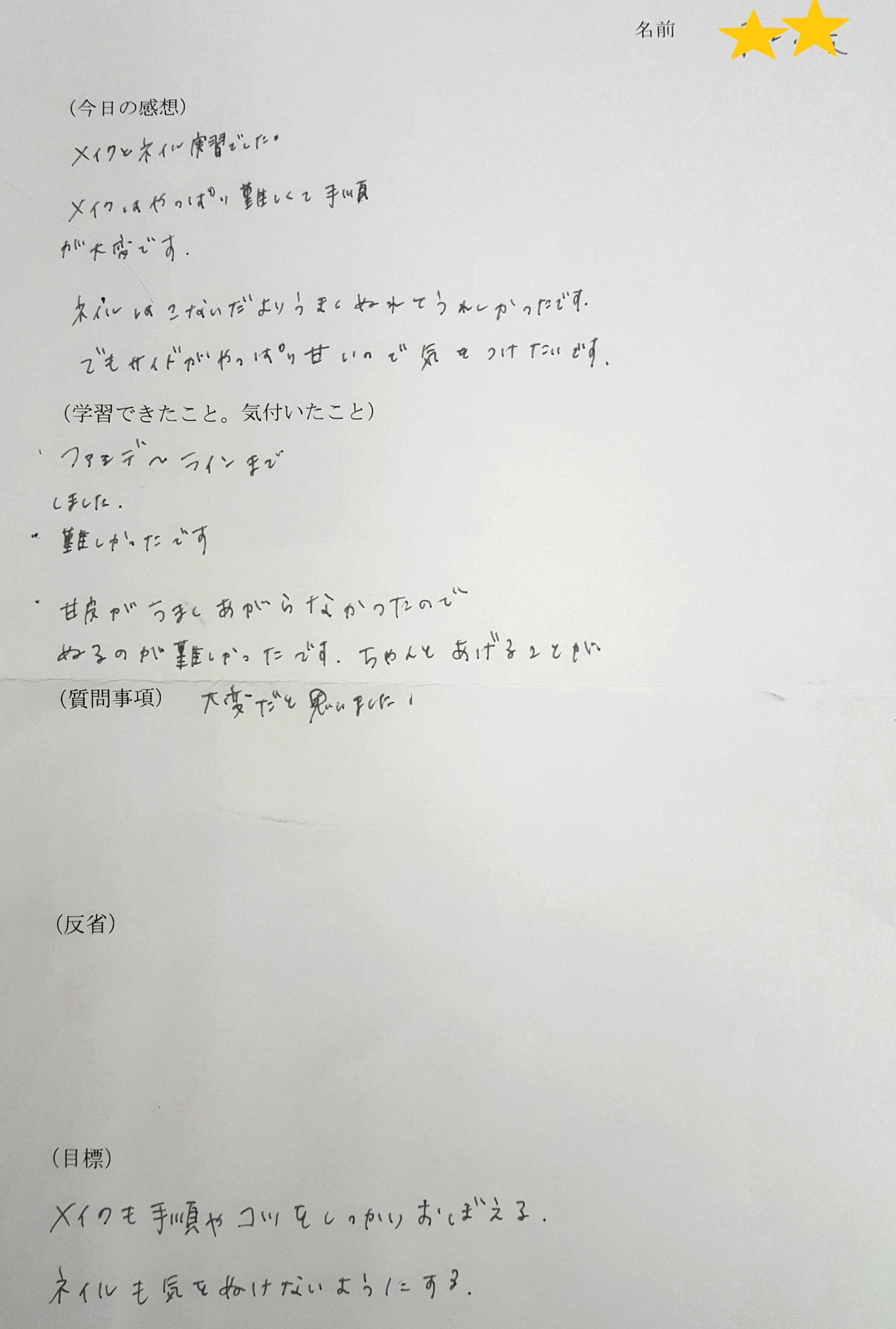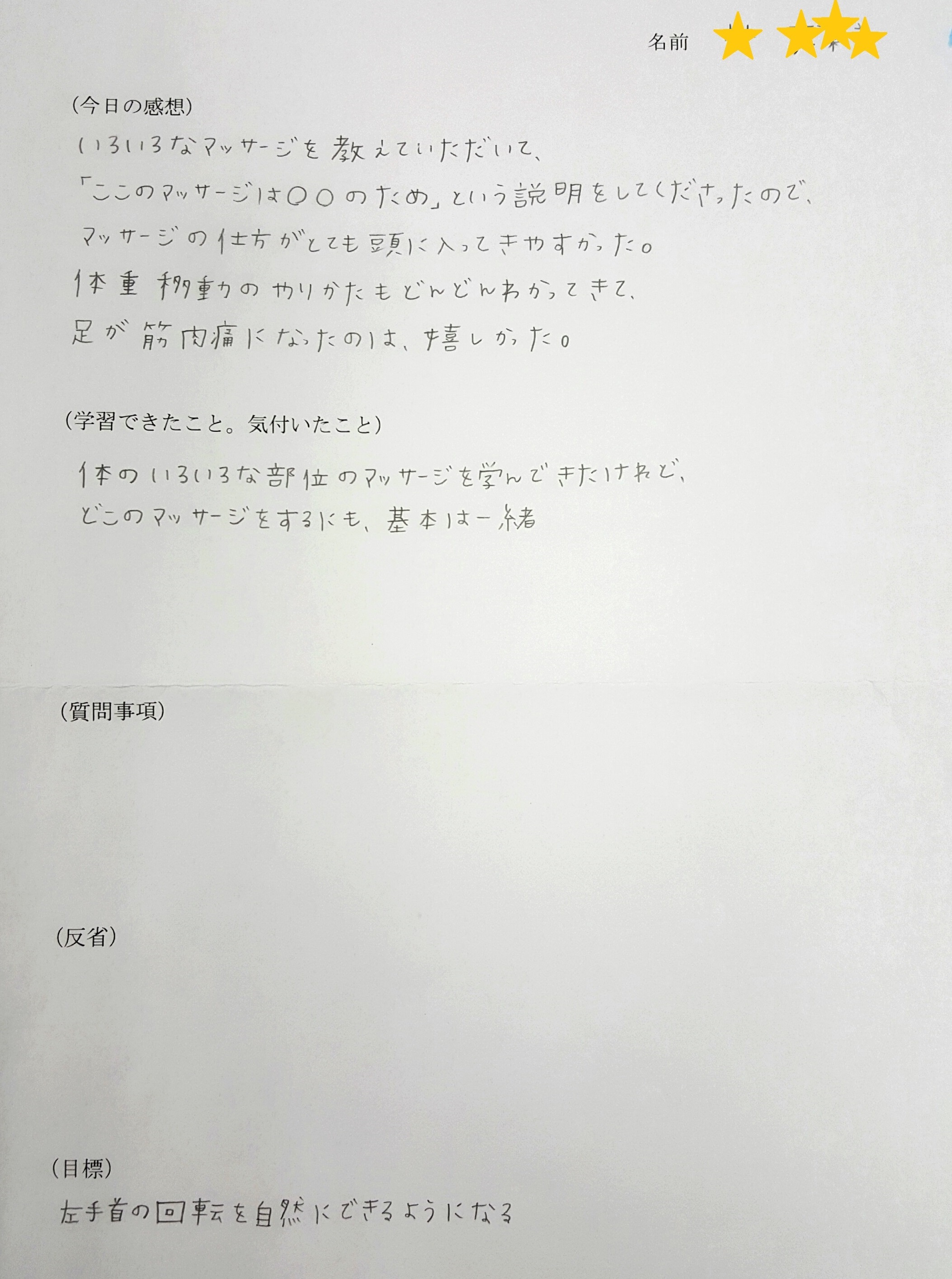 その日の反省、こうなっていきたい!という目標など、